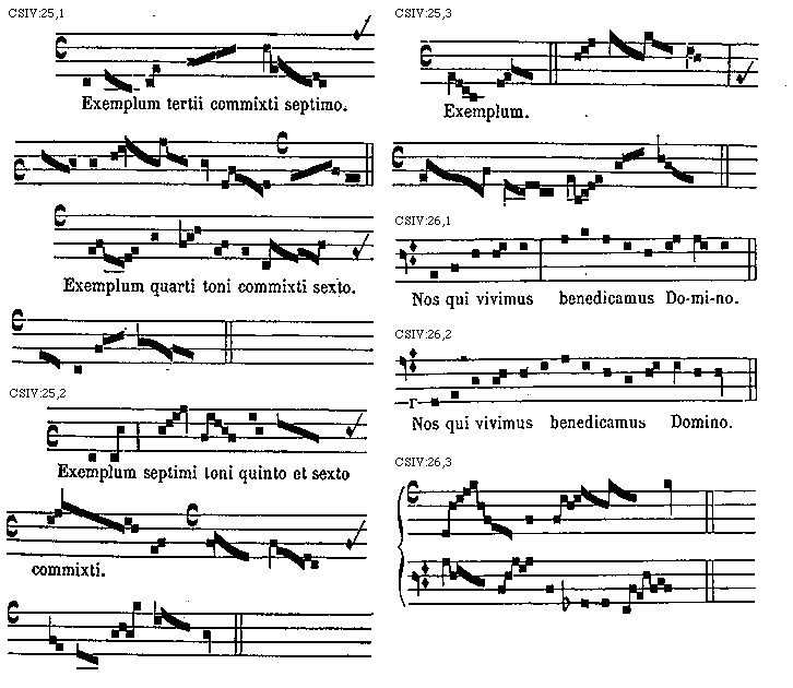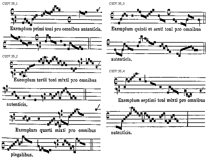 [CSIV:35,2; text: Exemplum tertii toni mixti pro omnibus autenticis. Exemplum quarti mixti pro omnibus plagalibus.] [TINNAT 10GF]