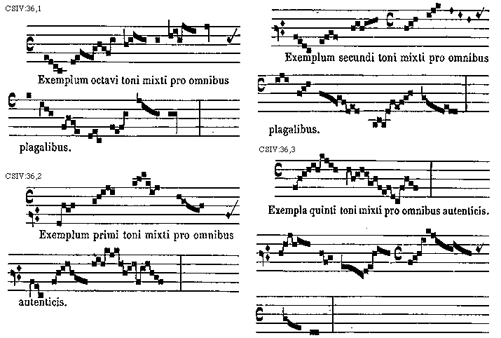 [CSIV:36,3; text: Exempla quinti toni mixti pro omnibus autenticis.] [TINNAT 11GF]