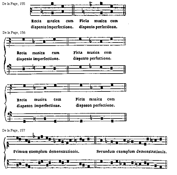 [De La Fage, 156; text: Recta musica cum diapente imperfectione. Ficta musica cum diapente perfectione. Recta musica cum diapason imperfectione. Ficta musica cum diapason perfectione.] [UGOMUS 17GF]