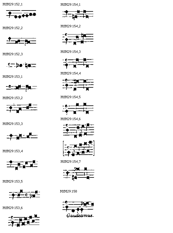 Quod etiam presentibus exemplaribus notissime percipi potest. [MfM29:162; text: Formula primi toni. Pogressio secundi. Formula tercij toni. Progressio quarti.] [ANOLEIP 06GF]