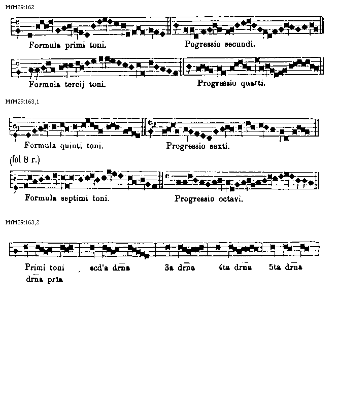 [163] [MfM29:163,1; text: Formula quinti toni. Progressio sexti. Formula septimi toni. Progressio octavi.] [ANOLEIP 06GF]