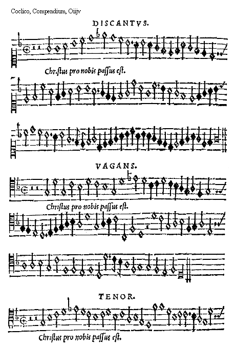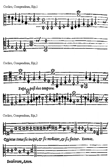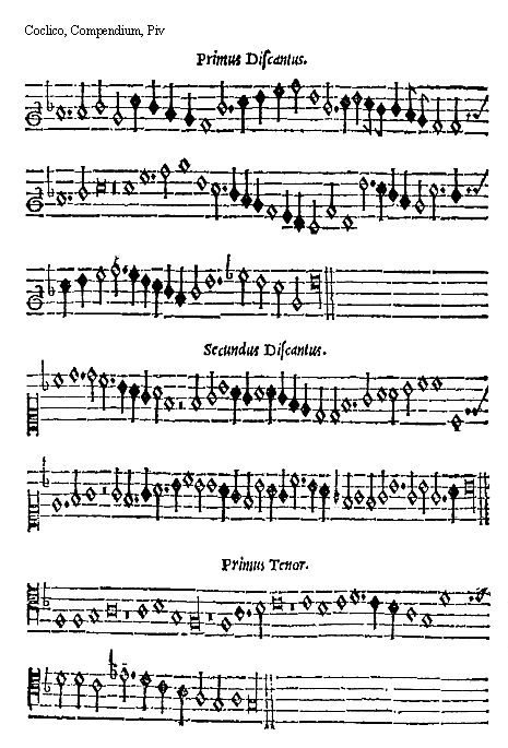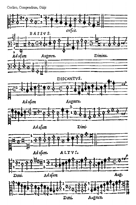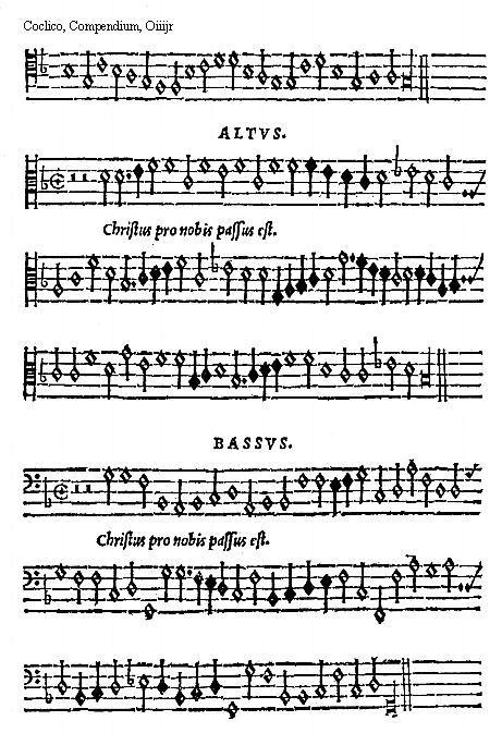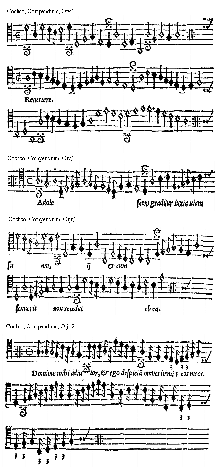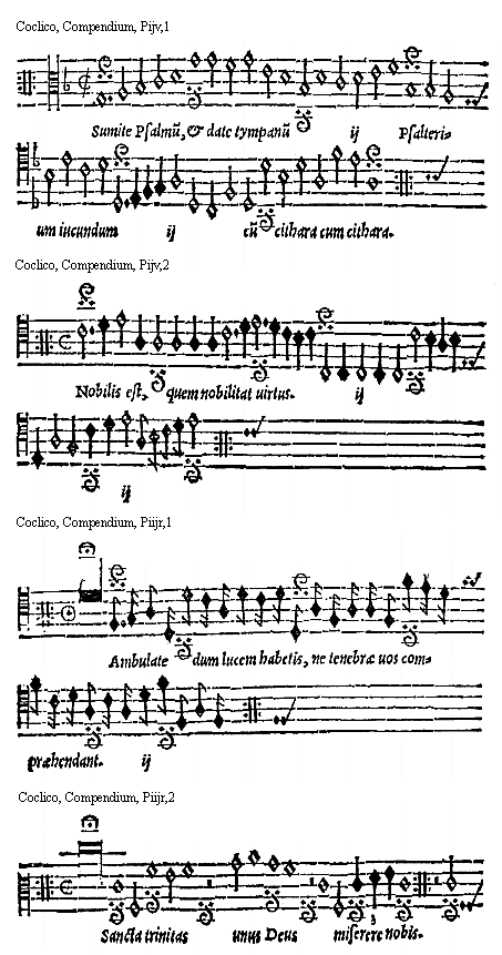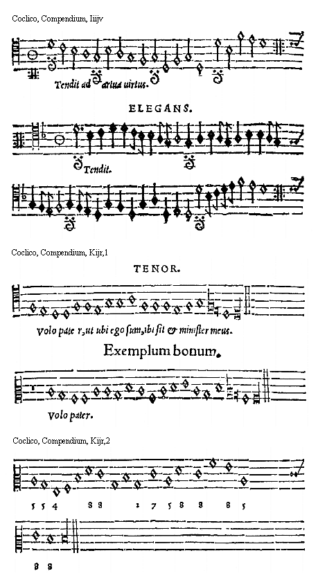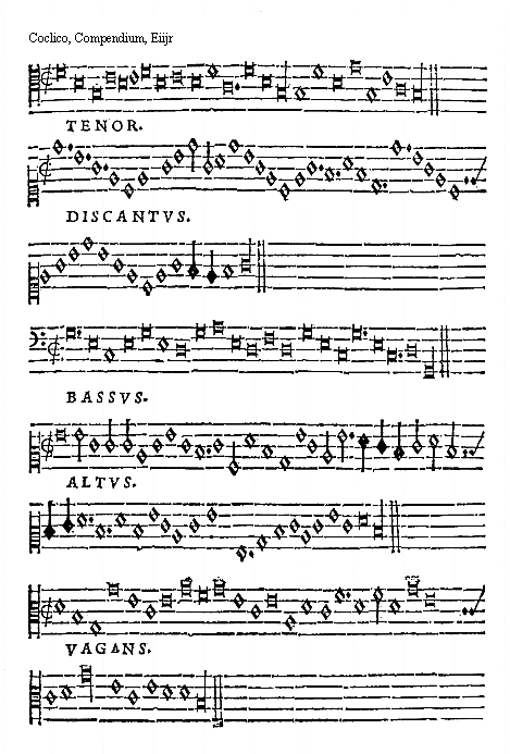 Source: Compendium musices descriptum ab Adriano Petit Coclico, discipulo Josquini de Pres (Nuremberg: Johann Berg, Ulrich Neuber, 1552; repr., Kassel: Bärenreiter, 1954).