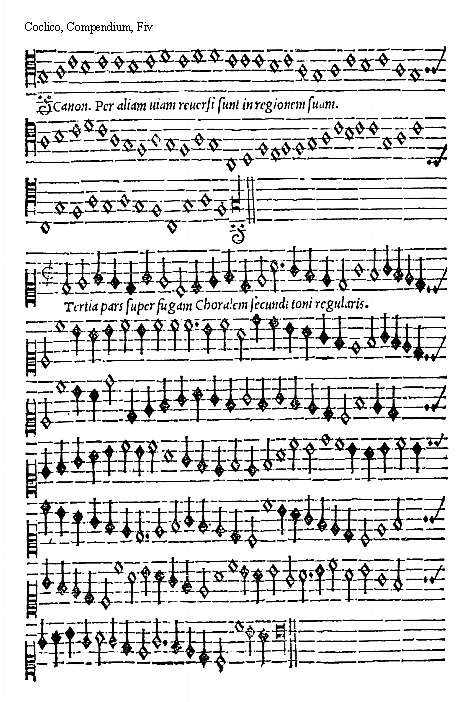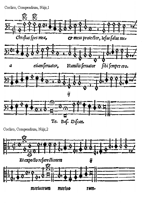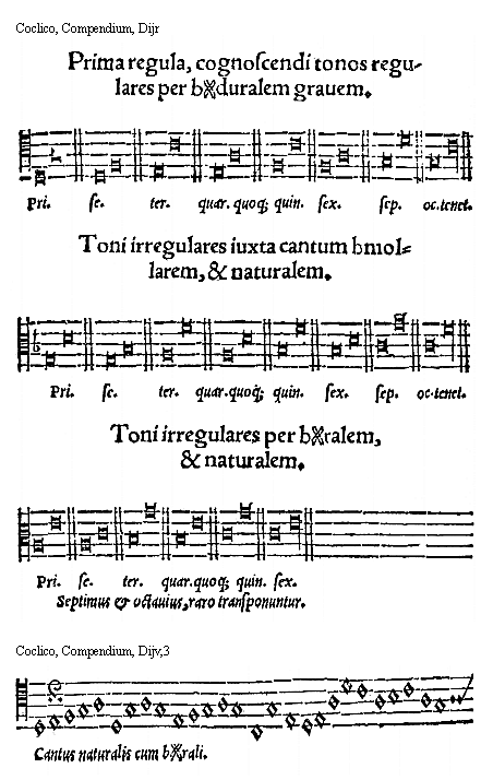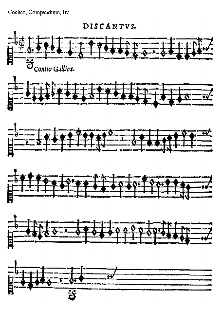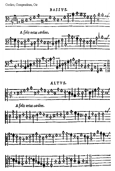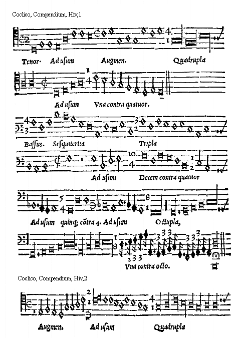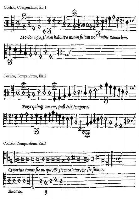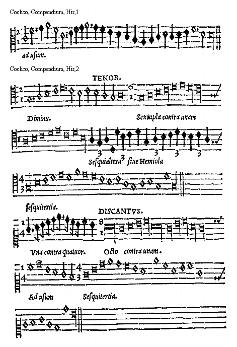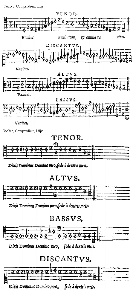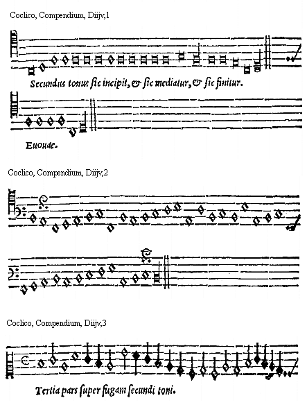 Source: Compendium musices descriptum ab Adriano Petit Coclico, discipulo Josquini de Pres (Nuremberg: Johann Berg, Ulrich Neuber, 1552; repr., Kassel: Bärenreiter, 1954).