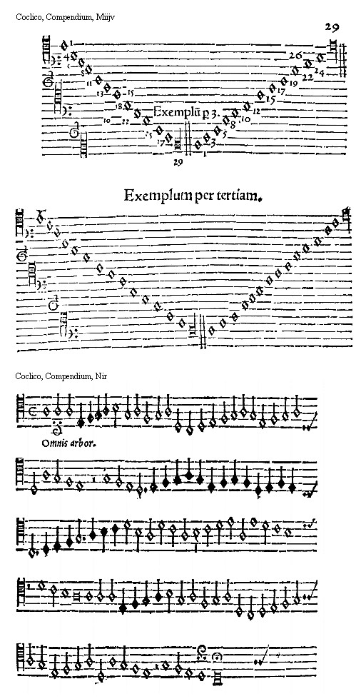 [Coclico, Compendium, Miijv; text: Exemplum per quartam. Exemplum per 3. Exemplum per tertiam. 1, 3, 4, 5, 6, 8, 10, 11, 12, 13, 15, 17, 18, 19, 20, 22, 24, 25, 26, 27, 29] [COCCOM 54GF]