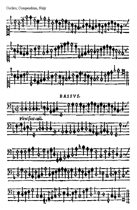 [f.Niiijr] [Coclico, Compendium, Niiijr; text: BASSVS. Pleni sunt coeli.] [COCCOM 60GF]