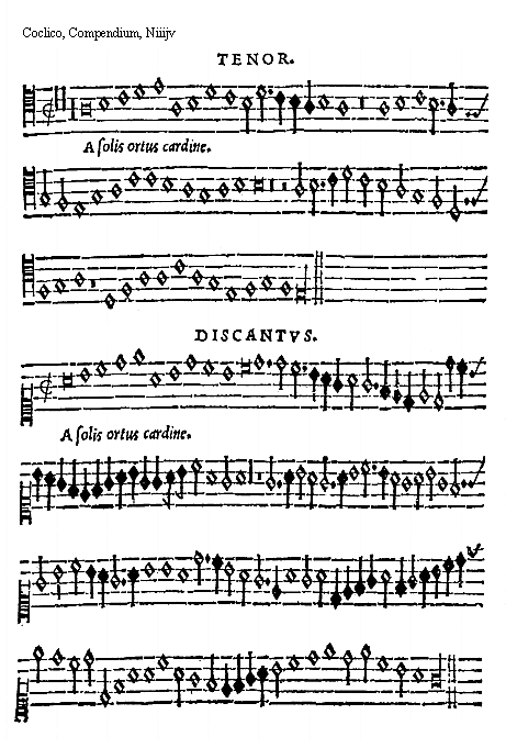 [Coclico, Compendium, Niiijv; text: DISCANTVS. TENOR. A solis ortus cardine.] [COCCOM 61GF]