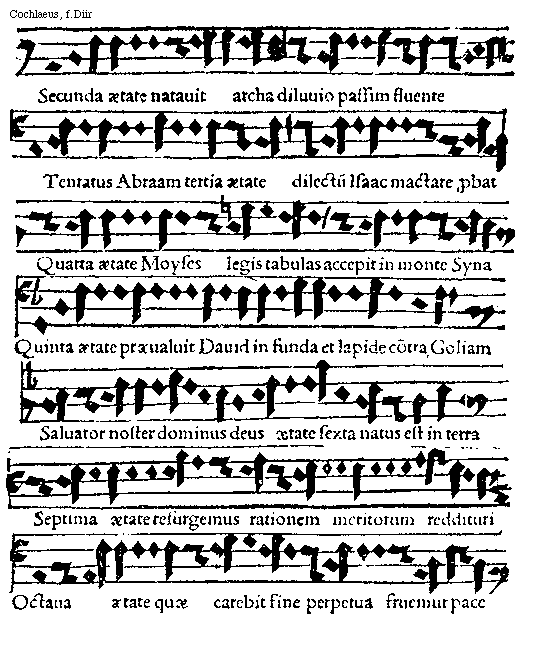 Source: Tetrachordum musices Ioannis Coclei Norici artium magistri Nurnbergae aeditum pro iuuentute Laurentiana in primis dein pro ceteris quoque Musarum Tyrunculis (Nurnbergae, impressi in officina excusoria Friderici Peypus, 1514), ff. Civ–Diiiir.