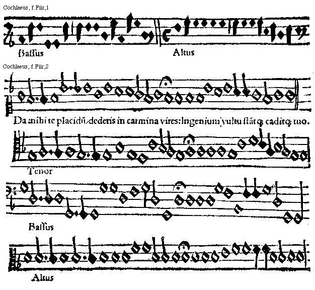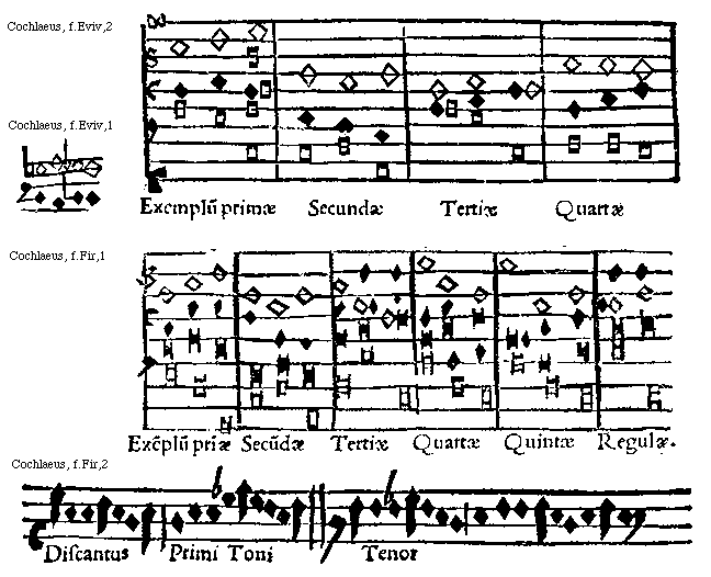 Source: Tetrachordum musices Ioannis Coclei Norici artium magistri Nurnbergae aeditum pro iuuentute Laurentiana in primis dein pro ceteris quoque Musarum Tyrunculis (Nurnbergae, impressi in officina excusoria Friderici Peypus, 1514), ff. Diiiiv–Fiiiir.