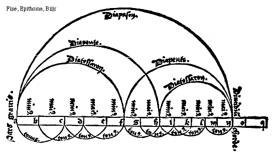 [Biijr] [Fine, Epithoma, Biijr; text: Diapason. Diapente. Diatessaron. Pars grauis. Dimidium chorde. maius. minus. tonus. a, b, c, d, e, f, g, h, i, k, l, m, n, o, q] [FINEPI 05GF]
