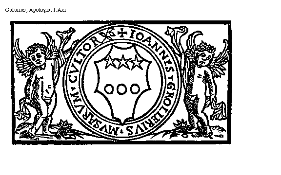 [Gafurius, Apologia, f.Axr; text: Ioannes Grolierivs mvsarvm cvltor] [GAFAPO 06GF]
