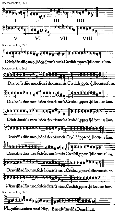 [36] [Dodecachordon, 36,1; text: Dixit dominus domino meo, sede a dextris meis. Credidi propter quod locutus sum.] [GLADOD1 12GF]