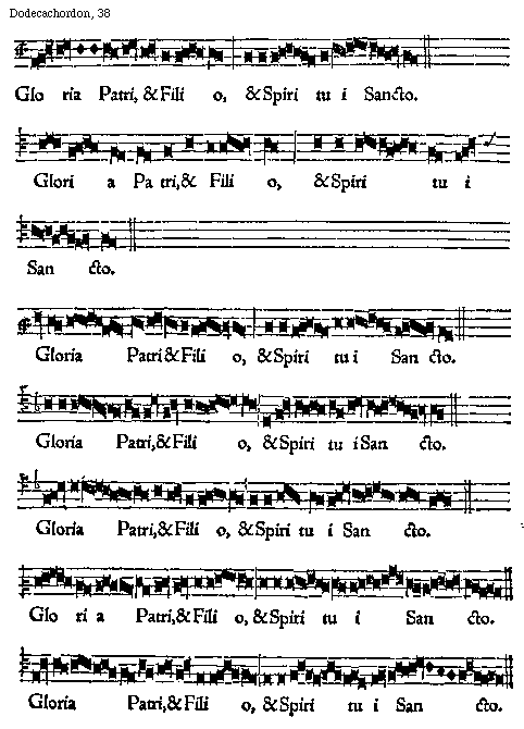 [38] [Dodecachordon, 38; text: Gloria Patri, et Filio, et Spiritui Sancto.] [GLADOD1 14GF]