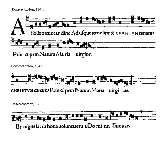 [Dodecachordon, 170,3; text: IAm lucis orto sydere Deum precemur supplices. Vt in diurnis actibus nos seruet a nocentibus.] [GLADOD2 52GF]