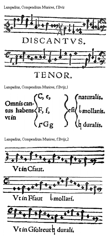 [Lampadius, Compendium Musices, f.Fvijr,2; text: dd, c, [Gamma]] [LAMCOM 36GF]