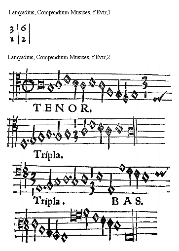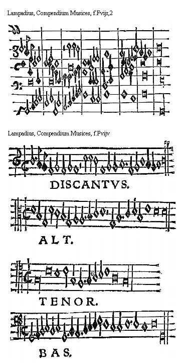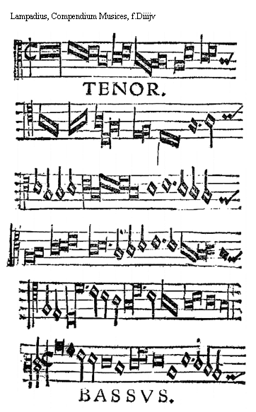 [Lampadius, Compendium Musices, f.Fiiijv,1; text: 4, 1, TENOR. BASSVS.] [LAMCOM 34GF]