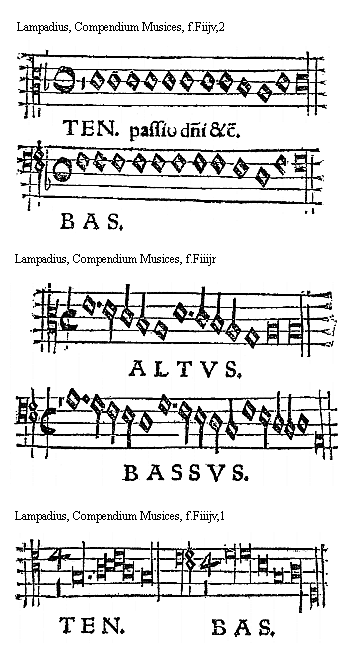 [Lampadius, Compendium Musices, f.Fiijv,2; text: TENOR. BASSVS. passio domini et cetera] [LAMCOM 34GF]