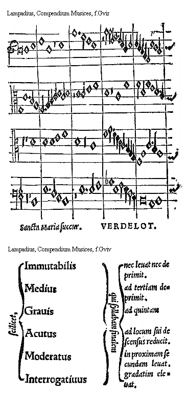 [Lampadius, Compendium Musices, f.Gvir; text: Sancta Maria succur. VERDELOT.] [LAMCOM 44GF]