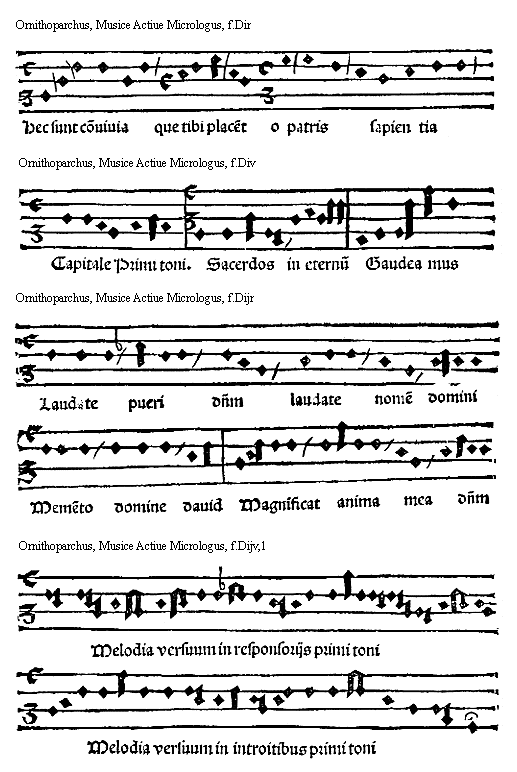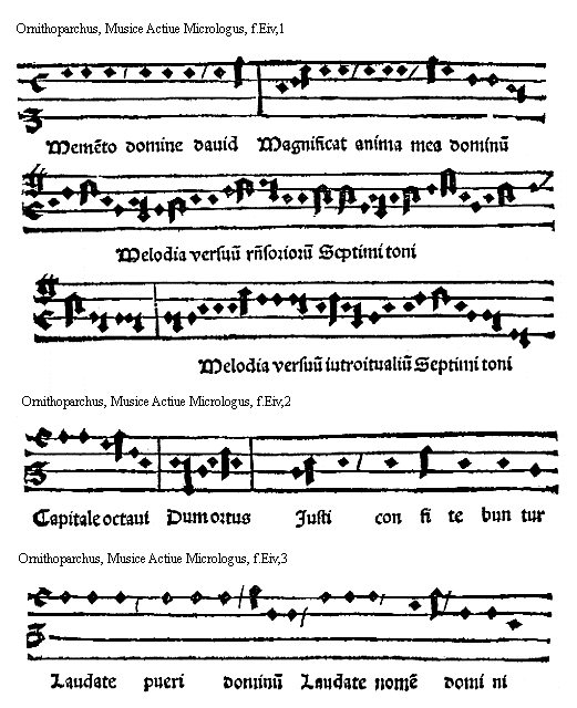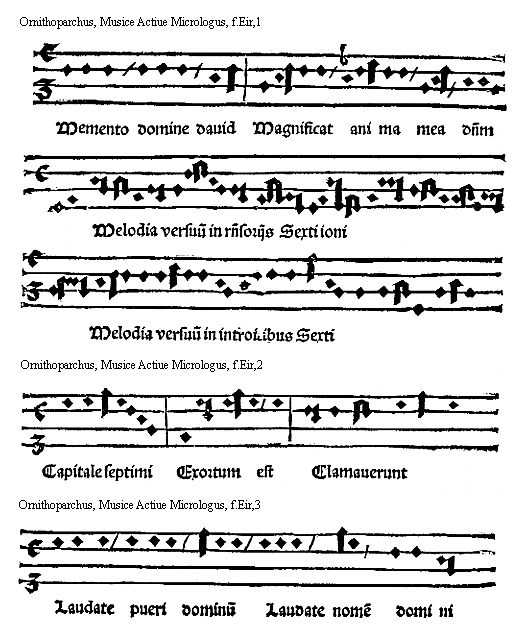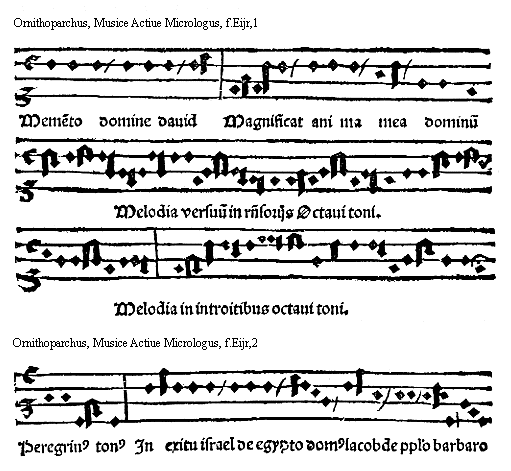 [f.Eijr] [Ornithoparchus, f.Eijr,1; text: Memento domine dauid, Magnificat anima mea dominum, Melodia versuum in responsorijs Octaui toni. Melodia in introitibus octaui toni.] [ORNMUS1 16GF]