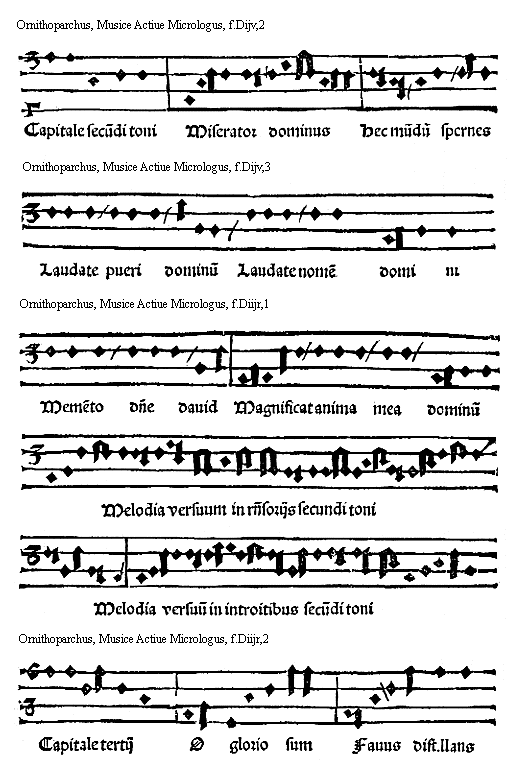 [Ornithoparchus, f.Dijv,2; text: Capitale secundi toni, Miserator dominus, Hec mundum spernes] [ORNMUS1 10GF]