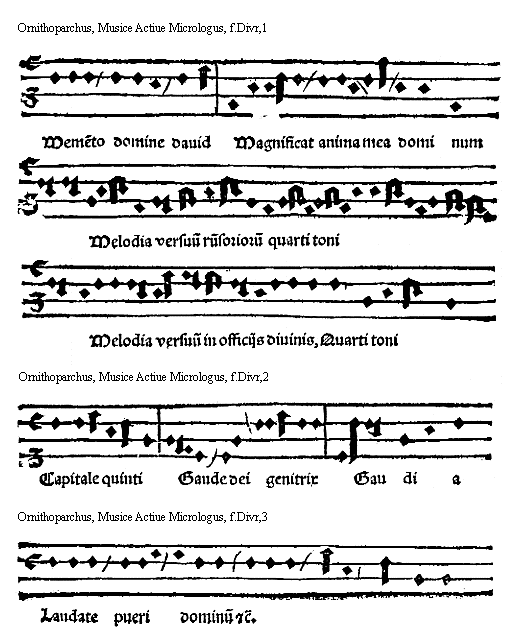 [f.Divr] [Ornithoparchus, f.Divr,1; text: Memento domine dauid, Magnificat anima mea dominum, Melodia versuum responsorium quarti toni, Melodia versuum in officijs diuinis, Quarti toni] [ORNMUS1 12GF]
