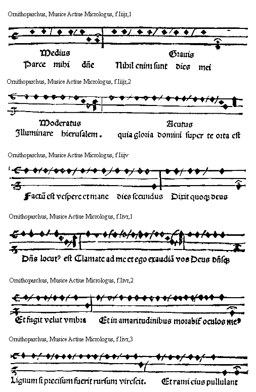 [Ornithoparchus, f.Iiijv; text: Factum est vespere et mane dies secundus, Dixit quoque deus] [ORNMUS3 01GF]