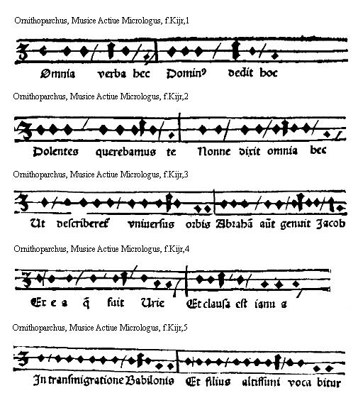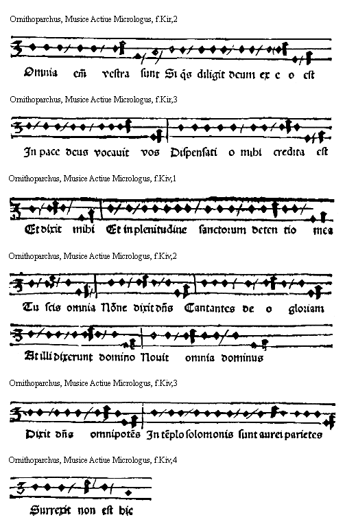 [Ornithoparchus, f.Kir,3; text: In pace deus vocauit vos Dispensati o mihi credita est] [ORNMUS3 03GF]