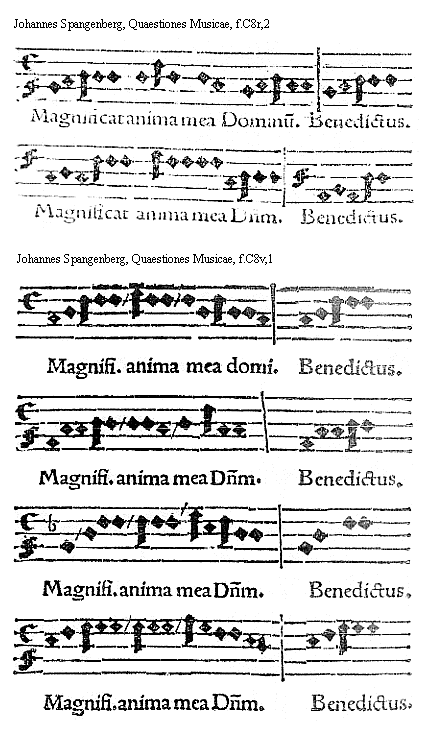 [f.C8v] [Johannes Spangenberg, Quaestiones Musicae, f.C8v,1; text: Magnificat anima mea dominum. Benedictus.] [SPANQUA 10GF]