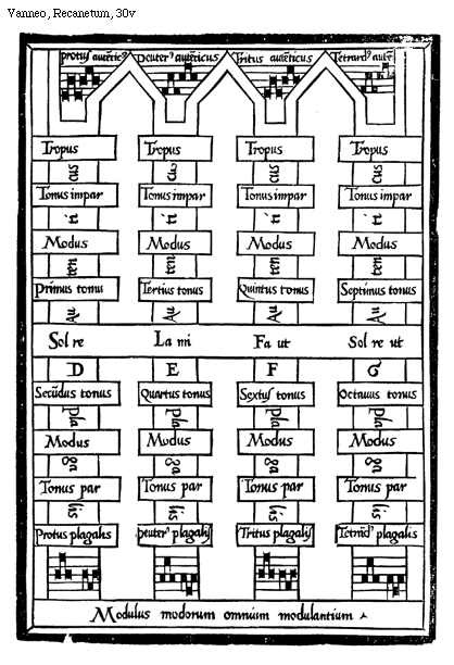 Quum igitur Primus tonus Autenticus naturaliter sit canorus, iocundus, hilaris, et plurimum animi affectus excitans, illiusmodi etiam uerba uel uulgaria, uel latina, sibi copulari exigit, ad quae uerba cum habilis existat, a Musicis habilis nuncupatur tonus.