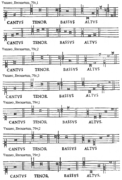 [Vanneo, Recanetum, 90v,4; text: CANTVS, BASSVS, ALTVS] [VANREM 59GF]