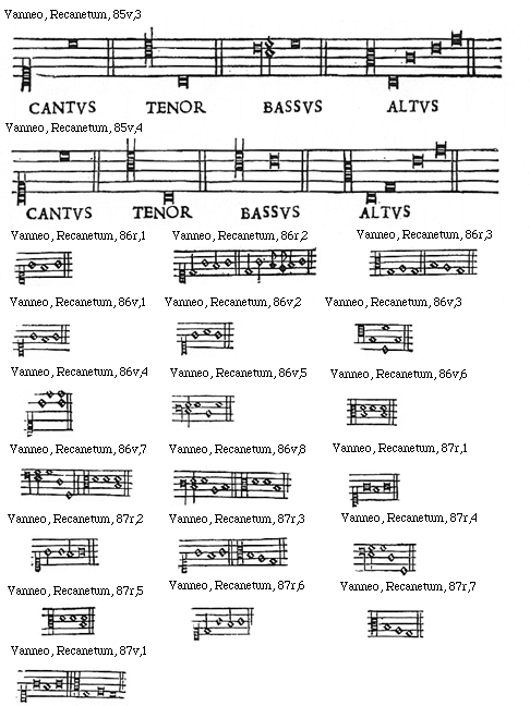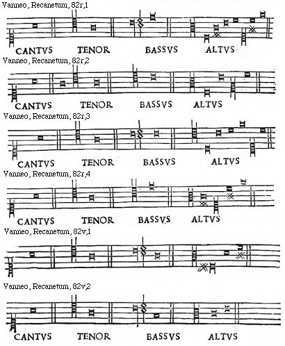 [Vanneo, Recanetum, 87v,2; text: CANTVS, TENOR, BASSVS, ALTVS] [VANREM 58GF]
