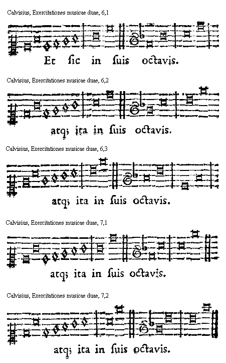 [6] [Calvisius, Exercitationes musicae duae, 6,1; text: Et sic in suis octavis.] [CALVEX 01GF]