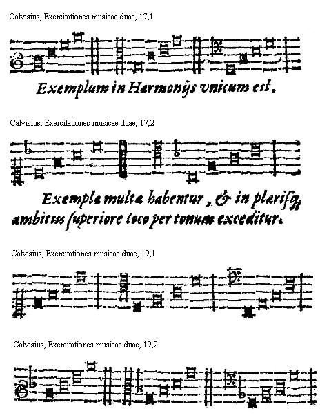 [Calvisius, Exercitationes musicae duae, 17,2; text: Exempla multa habentur, et in plaerisque ambitus superiore loco per tonum exceditur.] [CALVEX 04GF]