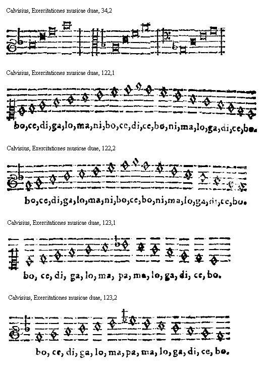 Satis quidem convenientes sunt hae voces Musicales et faciles, si eas cum veterum tetrachordis compares, sed tamen quia intergrum intervallum [dia pason] non explent, propter frequentem mutationem, ut quaeque vox suae clavi, cui competit, rectè applicetur, incipientibus non parum pariunt difficultatis. Cui etiam ut quidam mederentur, nuper in Belgio novas voces Musicales excogitarunt, numero septem, quae quoniam integrum [dia pason] explent, mutationi obnoxiae non sunt, sed quotiescunque opus est repetuntur, eaedemque et in ascendendo, et in descendendo permanent, et propter convenientem semivocalium et mutarum literarum in distributis syllabis consecutionem, ad promptam et expeditam pronunciationem haud difficulter se offerunt: Sunt autem hae septem cum octava repetita: