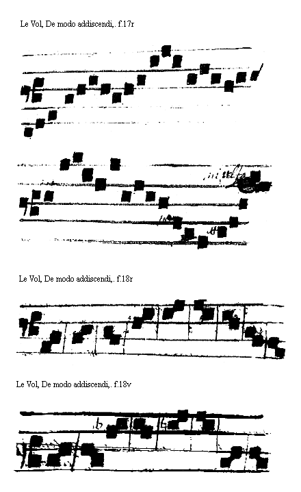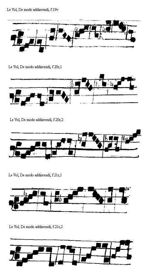 [Le Vol, De modo addiscendi, f.17r; text: la, sol, ut, mi, vel fa] [VOLDEM 04GF]