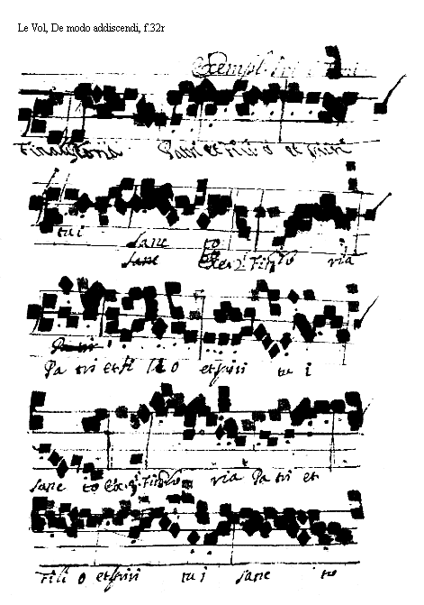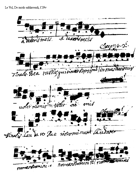 [Le Vol, De modo addiscendi, f.39r; text: Exemplum Primi Toni. Finalis. Dixit Dominus Domino meo Sede a dextris meis] [VOLDEM 12GF]