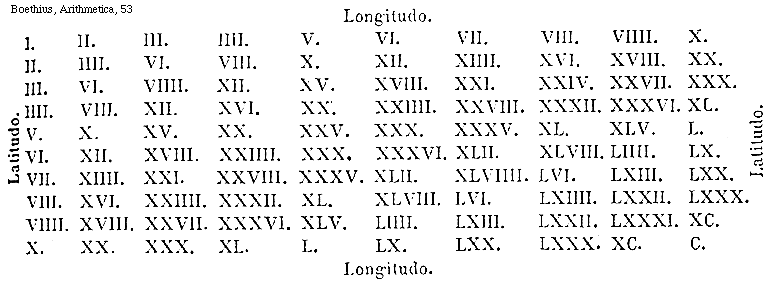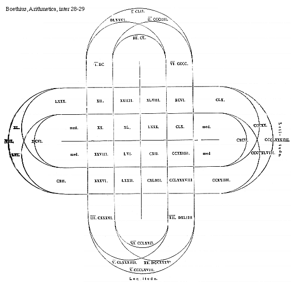 Source: Boetii De institutione arithmetica libri duo, ed. Godofredus Friedlein (Leipzig: B. G. Teubner, 1867), 1–72.