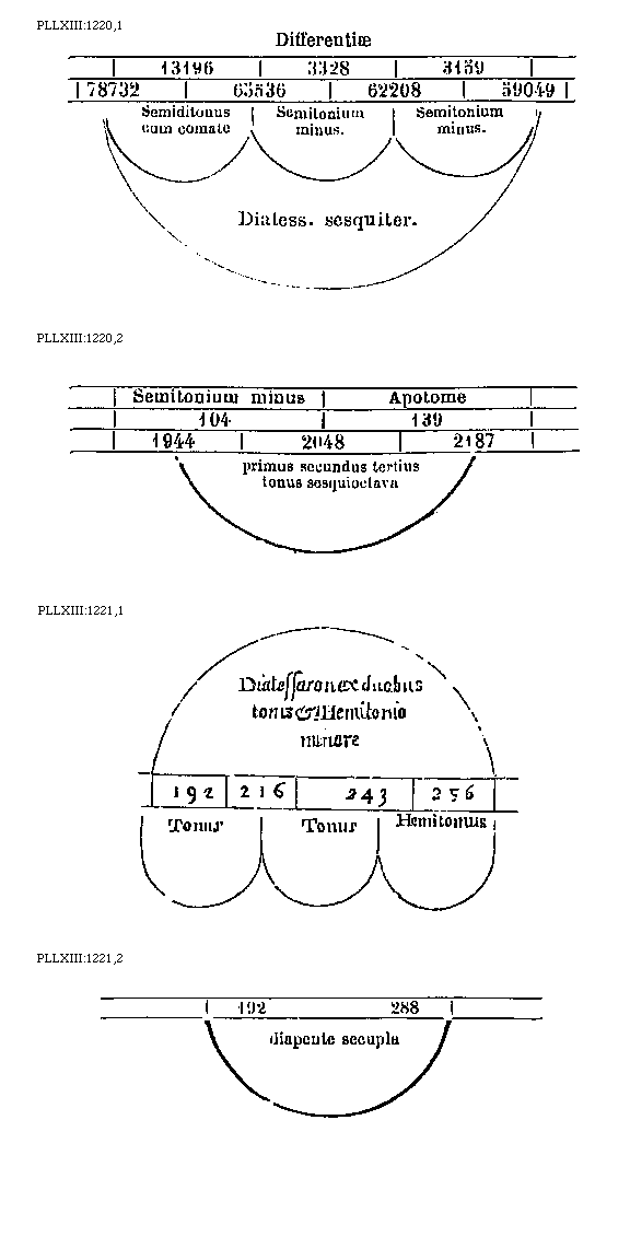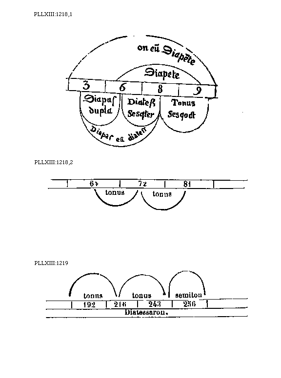 [PLLXIII:1219; text: tonus, semitonium, 192, 216, 243, 256, Diatessaron.] [BOEDIM2 06GF]