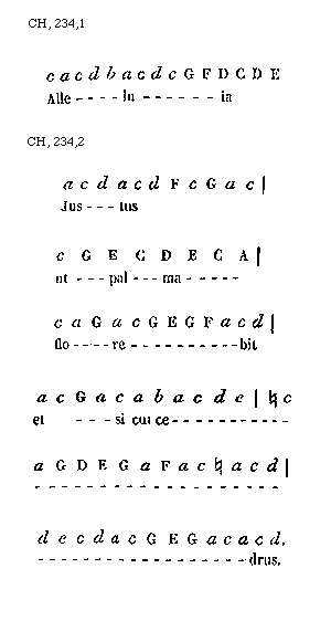 [CH, 233,1; text: c, a, b, e, d, G, C, D, F, E, Alleluia] [ADORFA 03GF]