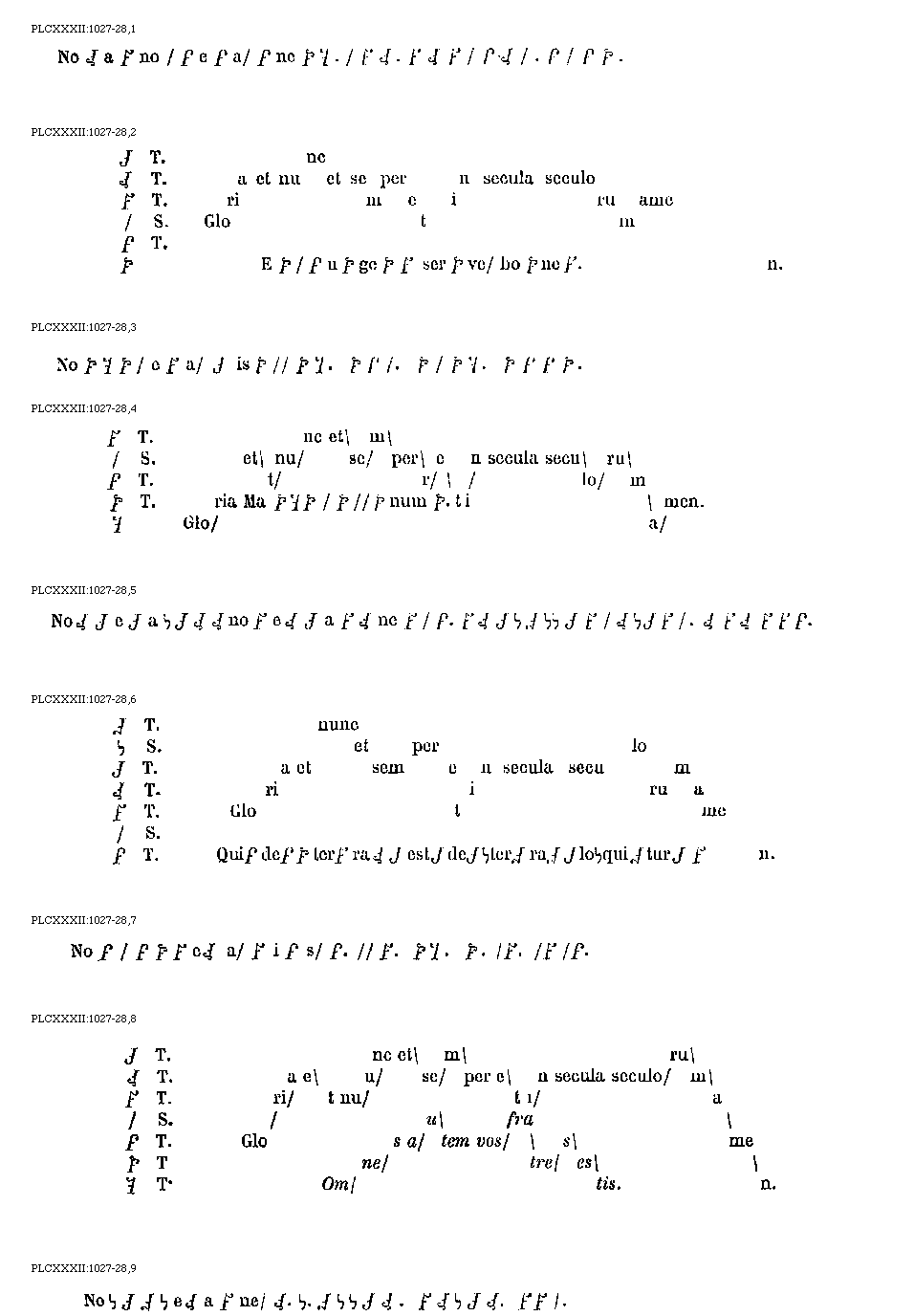 [PLCXXXII:1027-28,8; text: Semitonium. Tonus. Gloria et nuunc et semper et in secula seculorum amen. Omnes autem vos fratres estis.] [ANOCOBR 01GF]