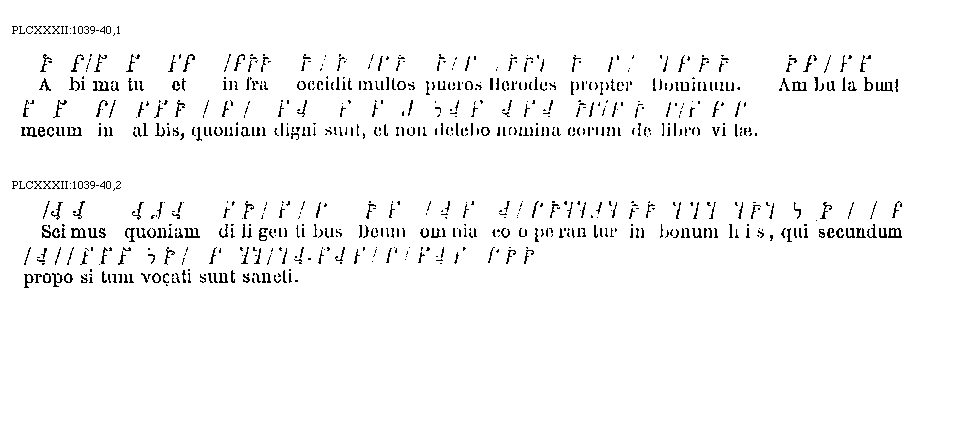 [PLCXXXII:1039-40,1; text: A bimatu et infra occidit multos pueros Herodes propter Dominum. Ambulabunt mecum in albis, quoniam digni sunt, et non delebo nomina eorum de libro vitae.] [ANOCOBR 07GF]