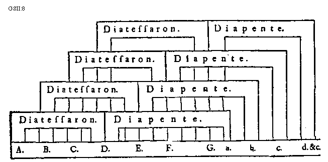 [GSII:8; text: Diatessaron. Diapente. A. B. C. D. E. F. G. a. [sqb]. c. d. et caetera] [GUIMIC 02GF]