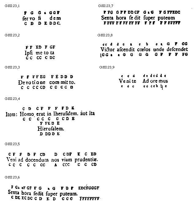 [GSII:23,6; text: F, G, a, D, E, C, Sexta hora sedit super puteum.] [GUIMIC 10GF]