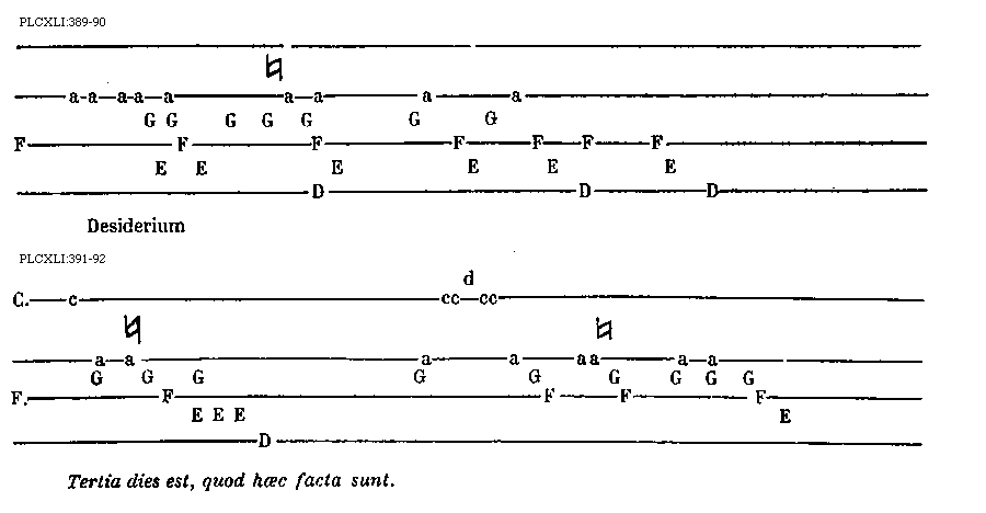 [PLCXLI:391-92; text: C. F. c, a, G, [sqb], E, D, d, Tertia dies est, quod haec facta sunt.] [GUIMICRO 04GF]
