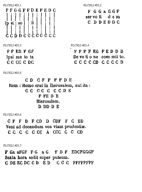 [PLCXLI:403,6; text: C, F, D, E, A, Veni ad docendum vos viam prudentiae.] [GUIMICRO 08GF]