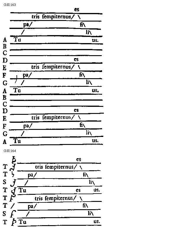 [GSI:171,3; text: Semitonium, Tonus, Tu patris sempiternus es filius.] [MUSENC 14GF]