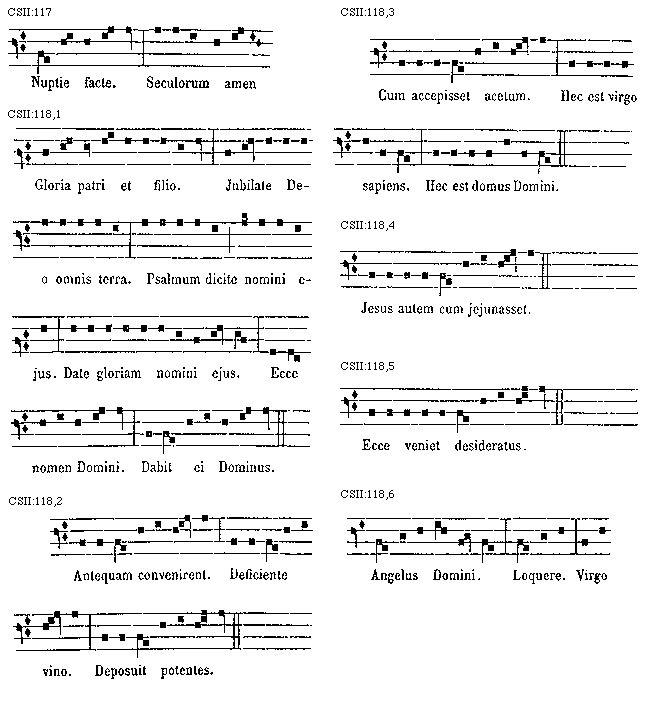 [CSII:118,2; text: Antequam convenirent. Deficiente vino. Deposuit potentes.] [ODOINT 01GF]