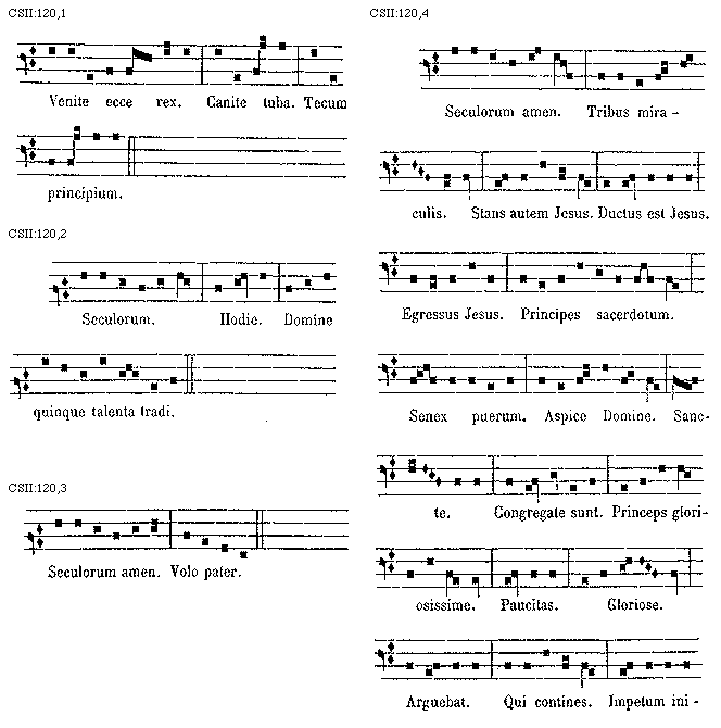 [120] [CSII:120,1; text: Venite ecce rex. Canite tuba. Tecum principium.] [ODOINT 03GF]