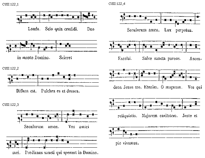 [122] [CSII:122,1; text: Lauda. Scio quia credidi. Due in monte Domino. Scieret] [ODOINT 05GF]