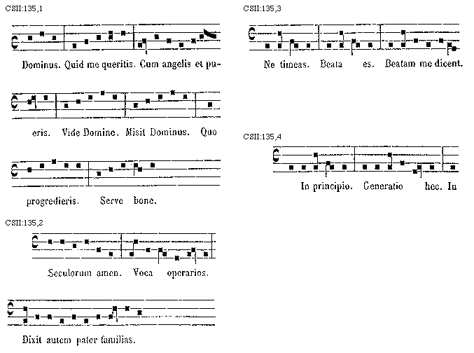[CSII:138,2; text: Rex pacificus. Peto Domine. Mercenarius. Propter nimium caritatem.] [ODOINT 19GF]