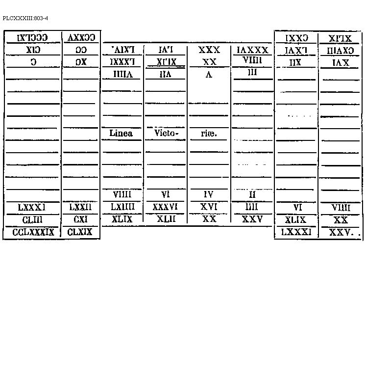 [803] [PLCXXXIII:803-4; text: III, V, VII, VIIII, XVI, XII, XX, XLIX, LXXXI, XC, C, CXVIII, LXVI, XXXVI, XXX, LVI, LXIV. CC, CIX, CXXI, CCXXV, CCCLXI, Linea Victoriae. VI, IV, II, LXXII, LXIIII, IIII, CLIII, CXI, XLII, CCLXXXIX, CLXIX, XXV.] [ODORH 03GF]